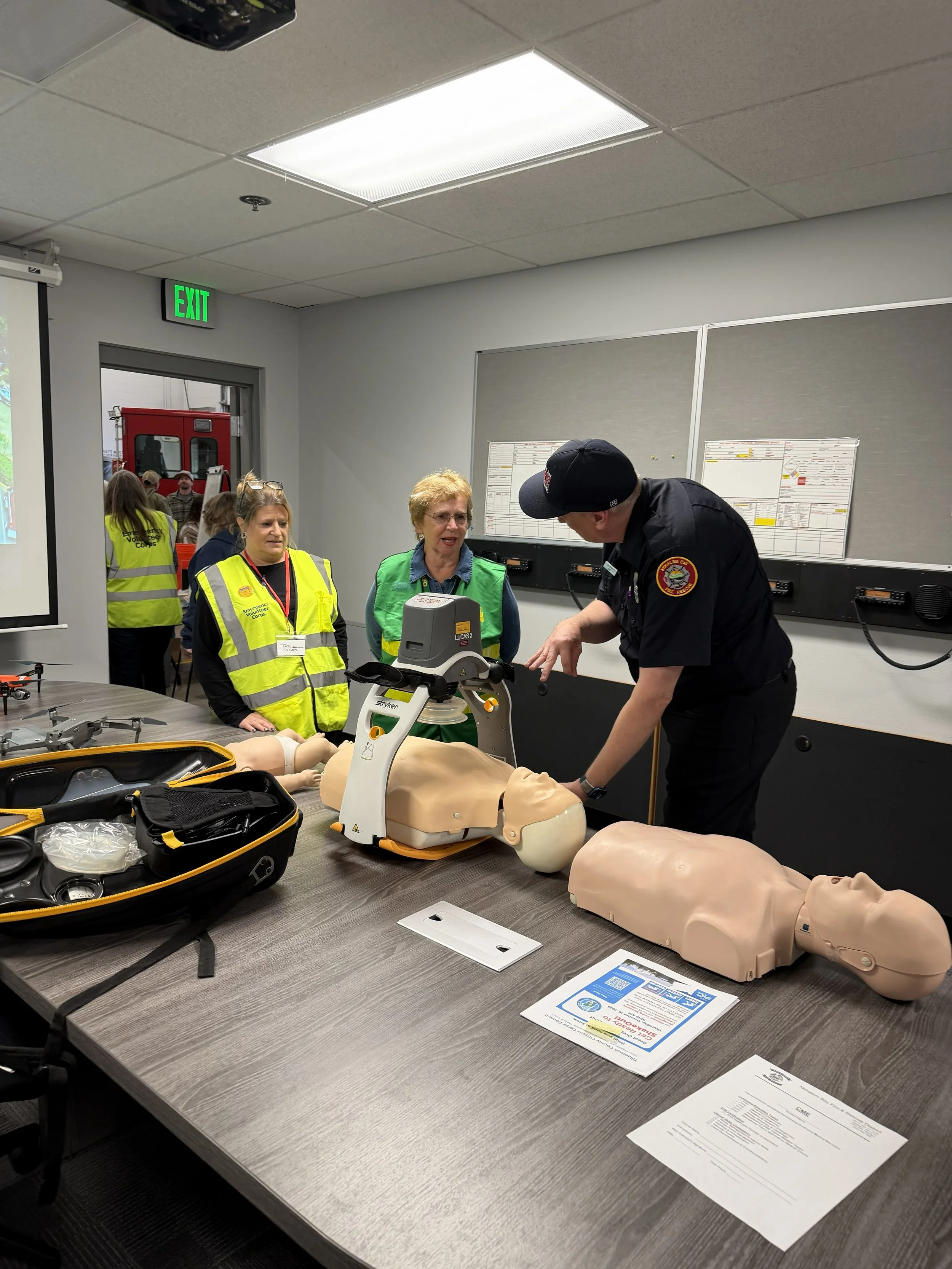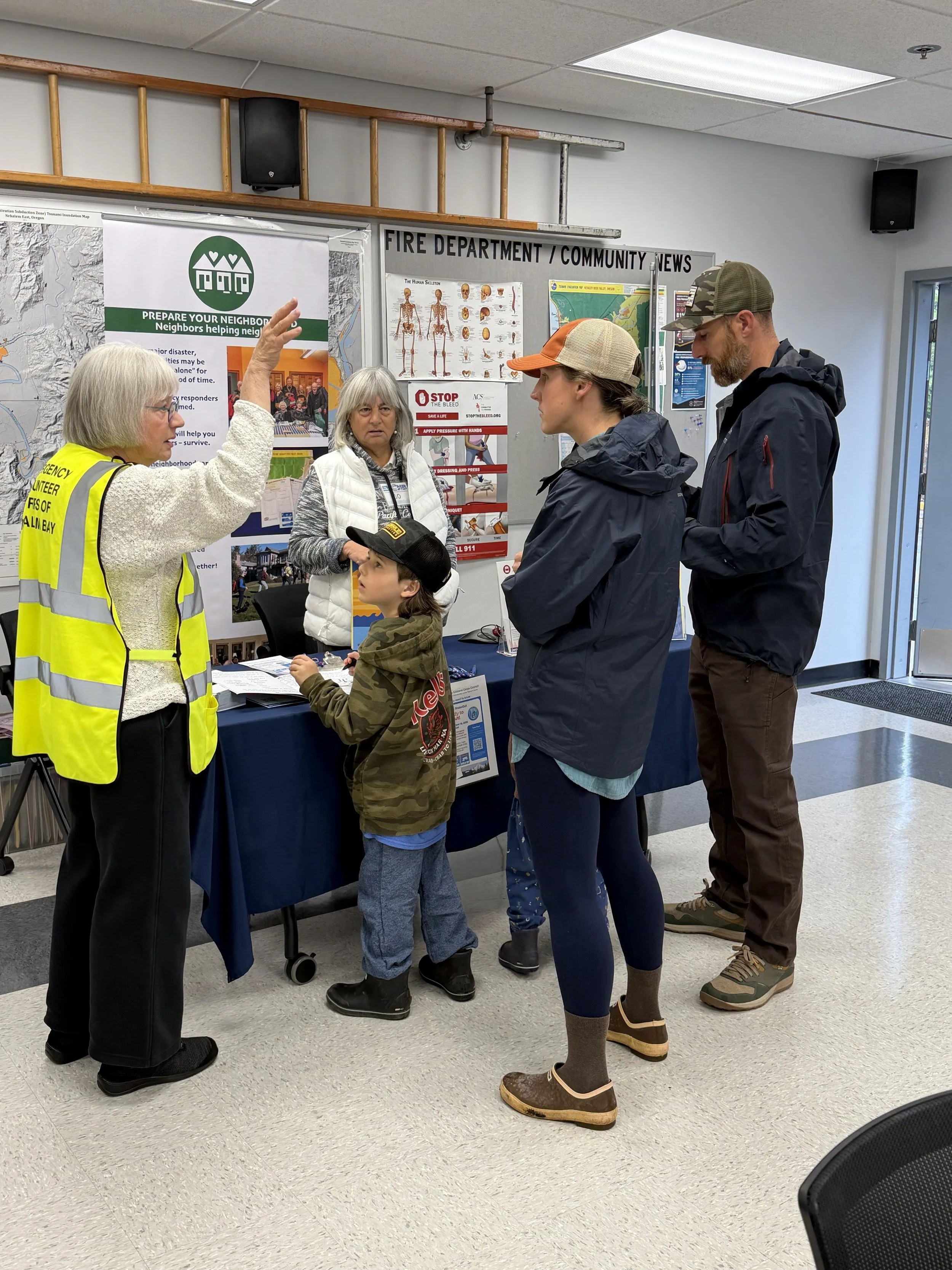 EVCNB partnered with Nehalem Bay Fire & Rescue during their annual Open House. We had the opportunity to set up stations feature our programs and educations opportunities for the public to engage with our volunteers one on one. Special thanks to the 20 volunteers that manned the emergency preparedness tables, helped to set up and break down the exhibit and our parking directors that braved the rain to help.